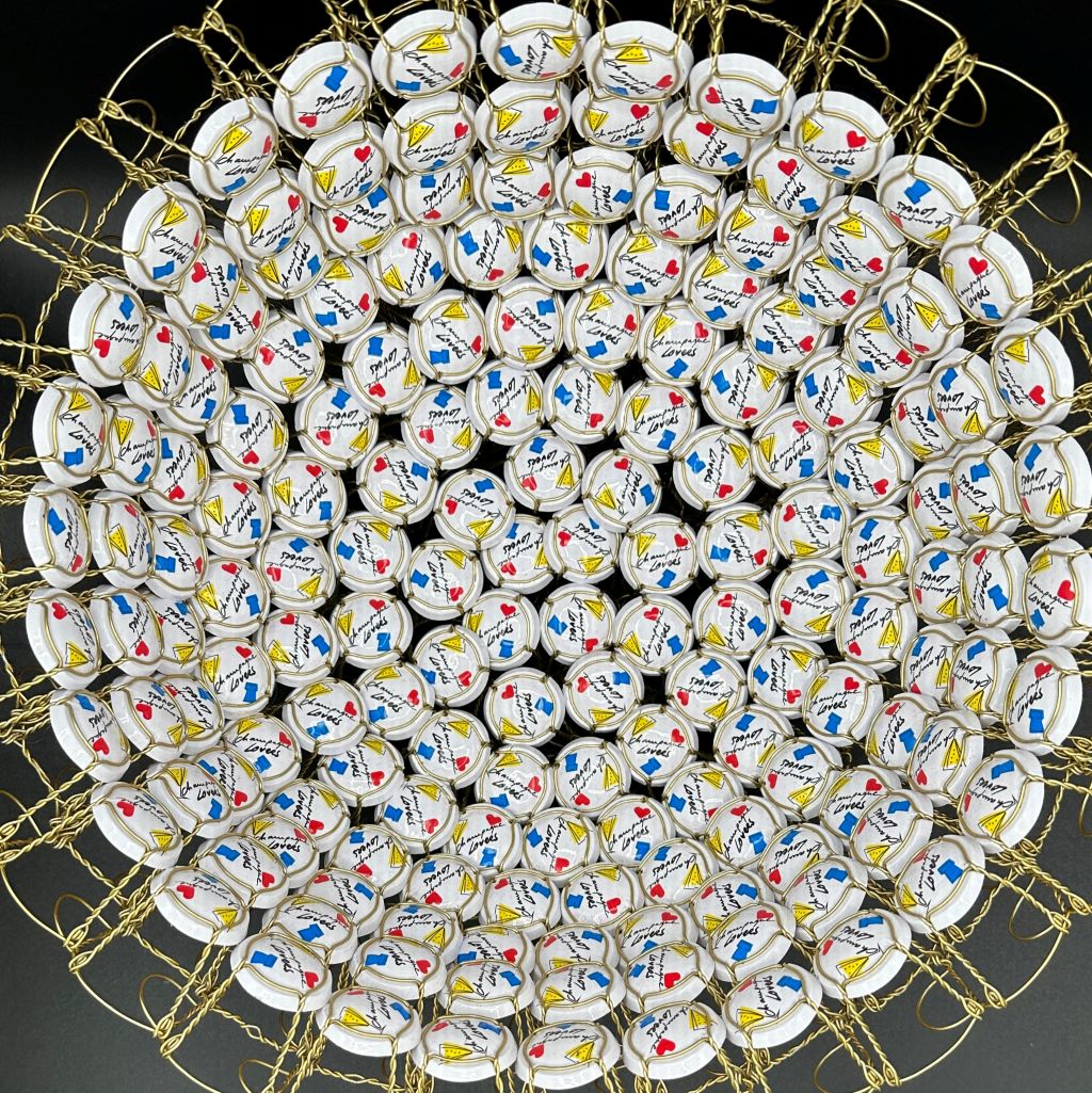 Réalisée entièrement à la main avec 167 muselets de Champagne, elle incarne à la fois légèreté, passion et célébration.